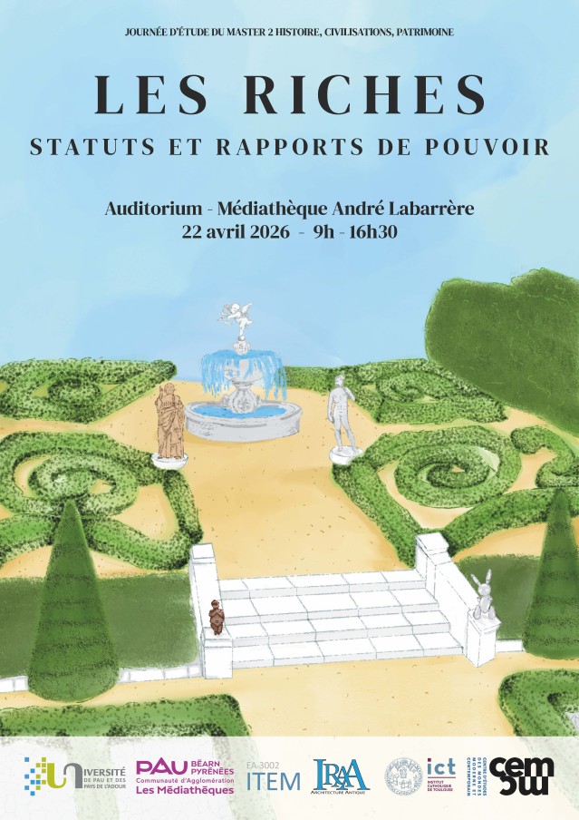 Le Master 2 d’Histoire, Civilisations et Patrimoine de l’Université de Pau et des Pays de l’Adour organise une journée d’étude consacrée aux problématiques liées au rôle de la richesse et aux statuts sociaux qu’elle engendre, dans une perspective pluridisciplinaire et diachronique.